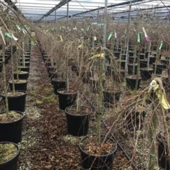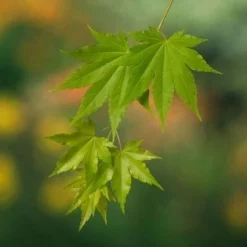 Acer palmatum ‘Wilson’s Pink Dwarf’ loopt in het voorjaar uit met mooie roze bladeren.